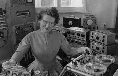 Daphne Oram [1925 – 2003] was a pioneering British composer & electronic musician. The first woman to create & run a sound studio & subsequently design & build an entirely new sound recording medium, she created the 'Oramics' technique at the BBC Radiophonic Workshop in England. This method of musique composition & performance was intended by Oram to allow a composer to be able to draw an 'alphabet of symbols' onto a set of ten sprocketed synchronised strips of 35mm film which covered a series of photo-electric cells that in turn generated an electrical charge to control the sound frequency, timbre, amplitude & duration & feed it through a machine that would, in turn, produce the relevant sounds on magnetic tape. The output from the instrument was only monophonic relying on multitrack tape recording to build up polyphonic textures.