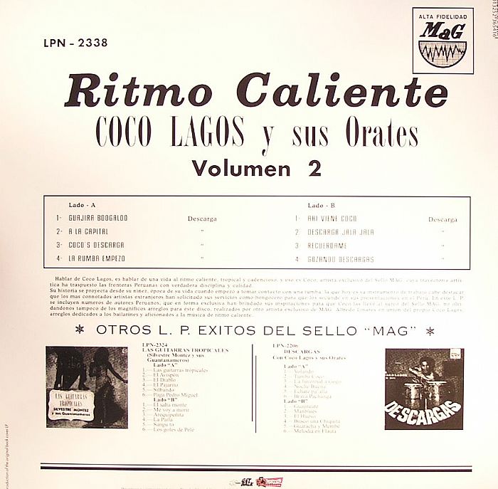 'Little known outside of Peru, the great Coco Lagos was a naturally talented multi-percussionist who reigned as king of the Peruvian beat in the late sixties and early seventies. This album released in 1970 two years after his debut on the great Peruvian MaG label, is solid descargas boogaloo with Cuban & Latin jazz leanings. Check out great tracks like 'Guajira Boogaloo' & 'Coco's Descarga' & peep his all-star band with none other than Mario Allison on timbales and Alfredo Linares on piano!' ~ some bra