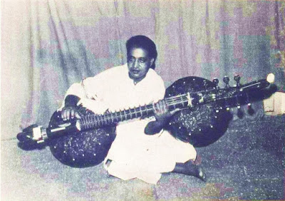 Although he was discouraged by his father from experimenting with the structure of the vina, he nevertheless modified the instrument after his father's death to better equip it for solo performance, transforming it into a larger bass instrument [sometimes called a Dagar vina]: With the help of the instrument house Kanailal & Brother, he enlarged the tumbas [gourds) and dhandhi [hollow neck] to create greater resonance and to allow the notes to sustain longer and so better reproduce the techniques used in dhrupad singing. Because of these modifications, the instrument was too heavy to be held in the standard Northern posture [with one tumba on the left shoulder], so he played instead in the Southern posture, with one tumba on the ground and one on the left knee.' ~ wiki