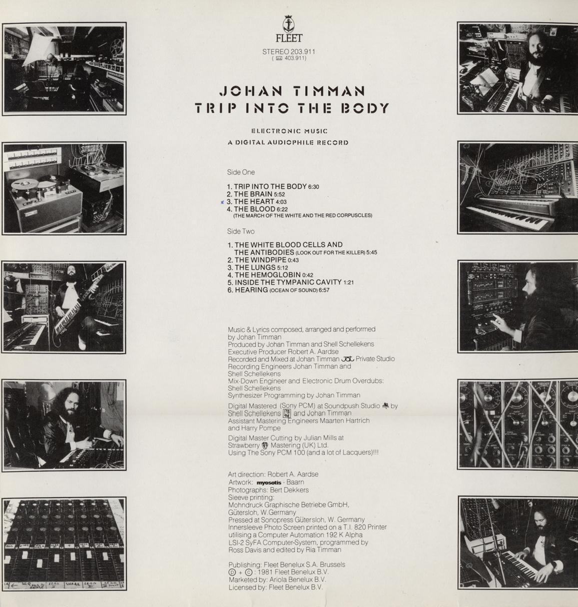 insanely insane electronic lp from the netherlands. his list of gear reads like a wet dream & must've cost a fortune back in the day & with the current mark-up for vintage synths, could likely put the kids thru college or getcha that cozy summer cottage in kerala. thematically based upon the inner-workings of the body but methinks it's just an excuse to get weird with it. definitely one of a kind. 320 vocoded ventricles